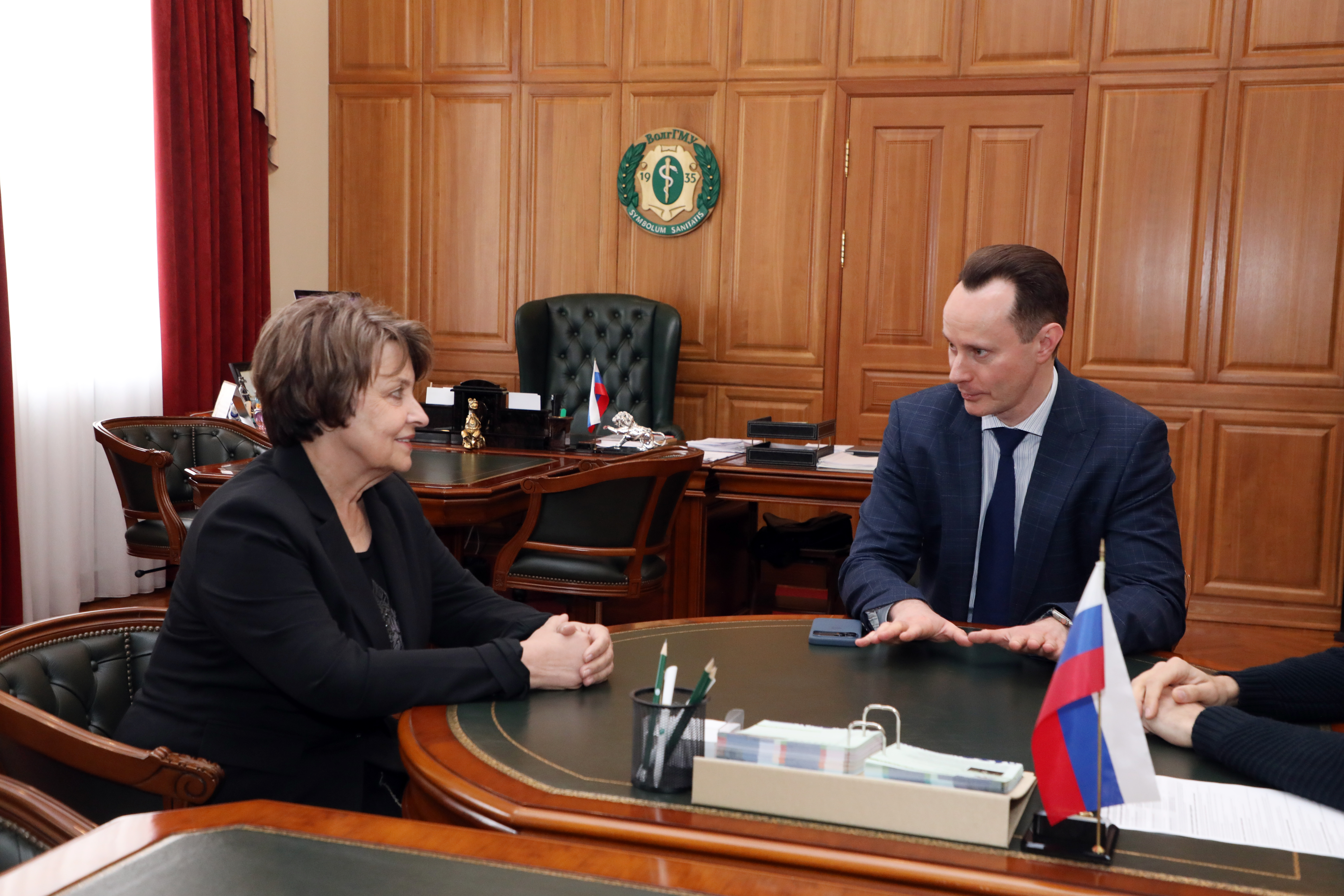 На встрече присутствовали проректор по научной деятельности, доктор фармацевтических наук, доцент Денис Бабков и начальник управления кадров Наталья Иваненко.